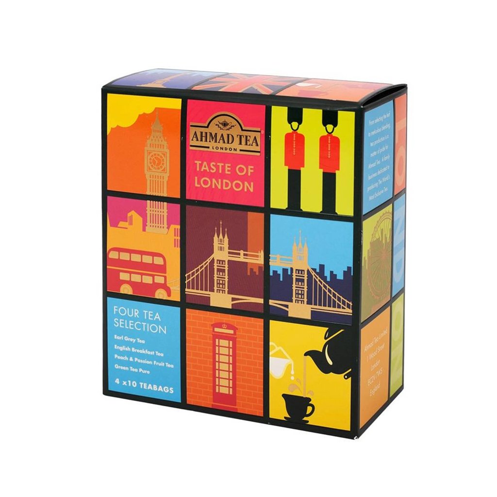 Mix čajů Ahmad Tea Taste of London – 40 nálevových sáčků v designovém balení, ideální pro milovníky britské čajové tradice.