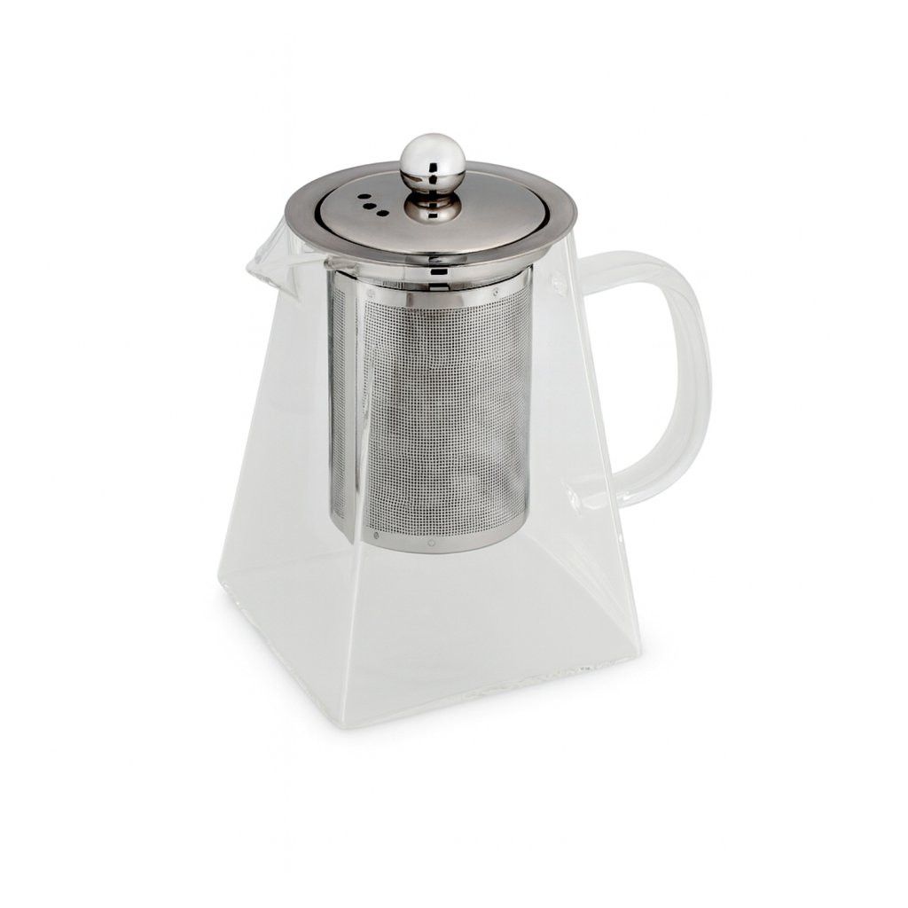 Tato konvice vyniká svým hranatým tvarem, který ji odlišuje od běžných kulatých konvic a dodává jí výjimečný charakter. Je vybavena vyjímatelným jemným nerezovým sítkem, které zaručuje čistý nálev bez lístků a drobných částic čaje. Nerezové víčko s ozdobnou kulatou rukojetí elegantně doplňuje celkový vzhled.