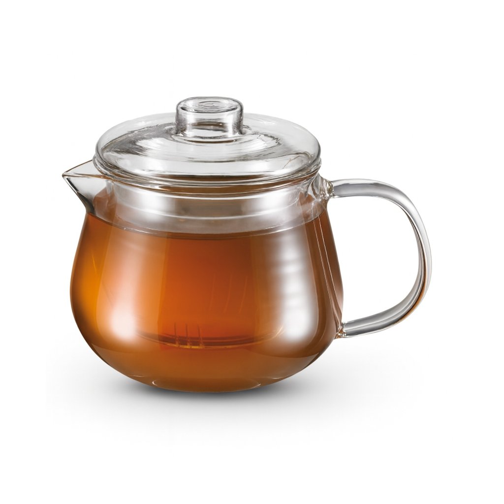 Praktická a elegantní čajová konvice z čirého skla s klasickým designem – ideální pro každodenní přípravu a servírování čaje s nádechem jednoduché elegance.