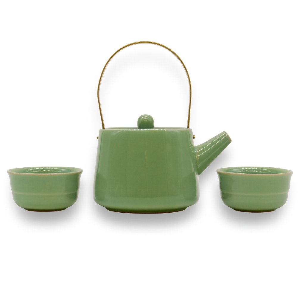 Konvice i šálky jsou vyrobeny z kvalitní keramiky, která výborně drží teplo a zajišťuje příjemný pocit při každém doušku. Kovové ouško je lehké, pevné a zároveň stylové – dodává soupravě jemný nádech tradice, jaký známe z asijských čajových obřadů.