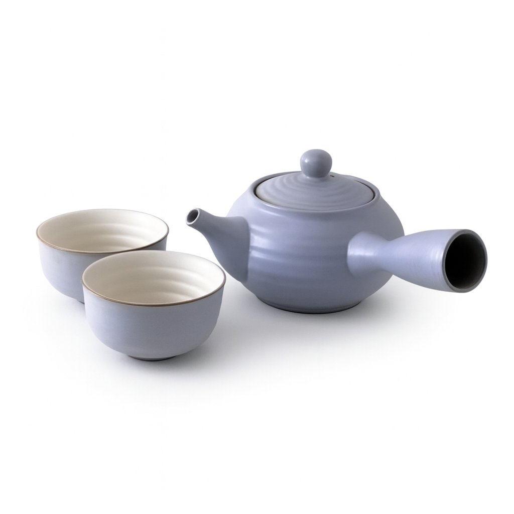 Design soupravy Chadaoyaqi vychází z filozofie wabi-sabi – krásy v prostotě a přirozenosti. Keramika s jemnou modrošedou glazurou působí harmonicky a zklidňujícím dojmem, přičemž každý kus nese drobné odchylky ruční výroby, které mu dodávají jedinečný charakter. Konvice je tvarována tak, aby se čaj mohl volně rozvinout a uvolnit svou plnou chuť i vůni.