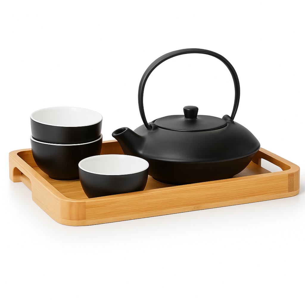 Souprava YAMINA je skvělou volbou pro ty, kteří hledají kombinaci estetiky a praktického použití v menší sadě. Dva šálky stačí pro intimní posezení, zatímco objem konvice zaručí dostatek čaje. Tác z bambusu přidává přírodní prvek a celému setu dodává vyváženost.