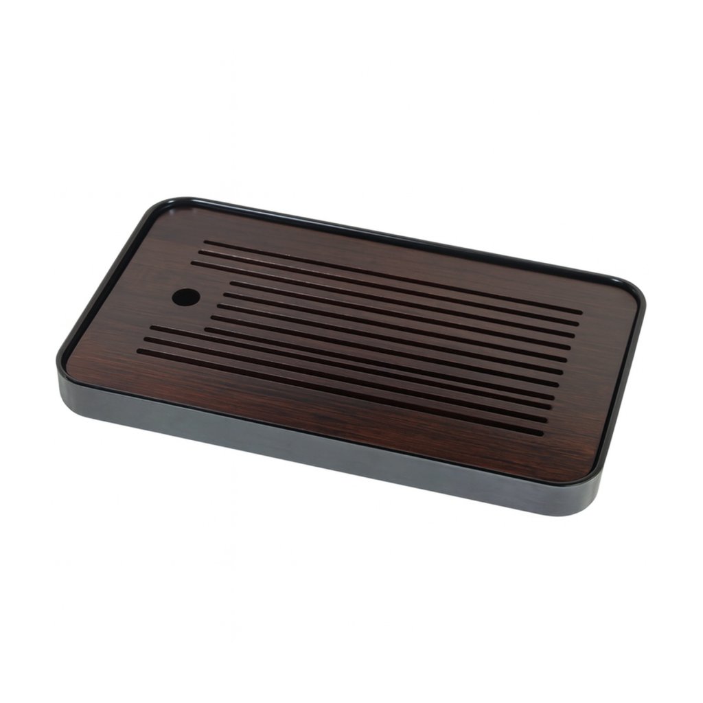 Elegantní čajové moře Heian v tmavém designu – moderní bambusový podnos s plastovou odkapávací nádobou, ideální pro čajové rituály Gong Fu Cha.