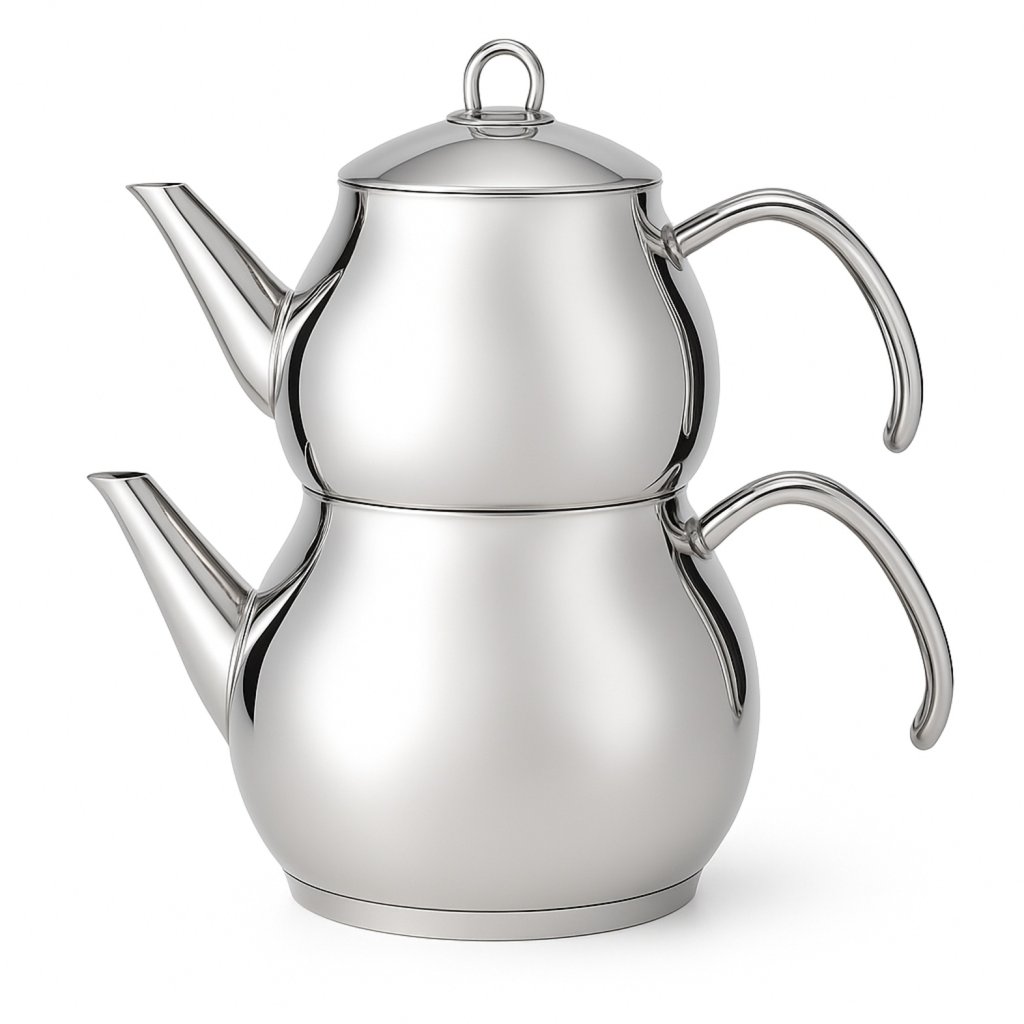 Elegantní rodinná konvice z nerezové oceli pro tradiční přípravu tureckého čaje s autentickou chutí.