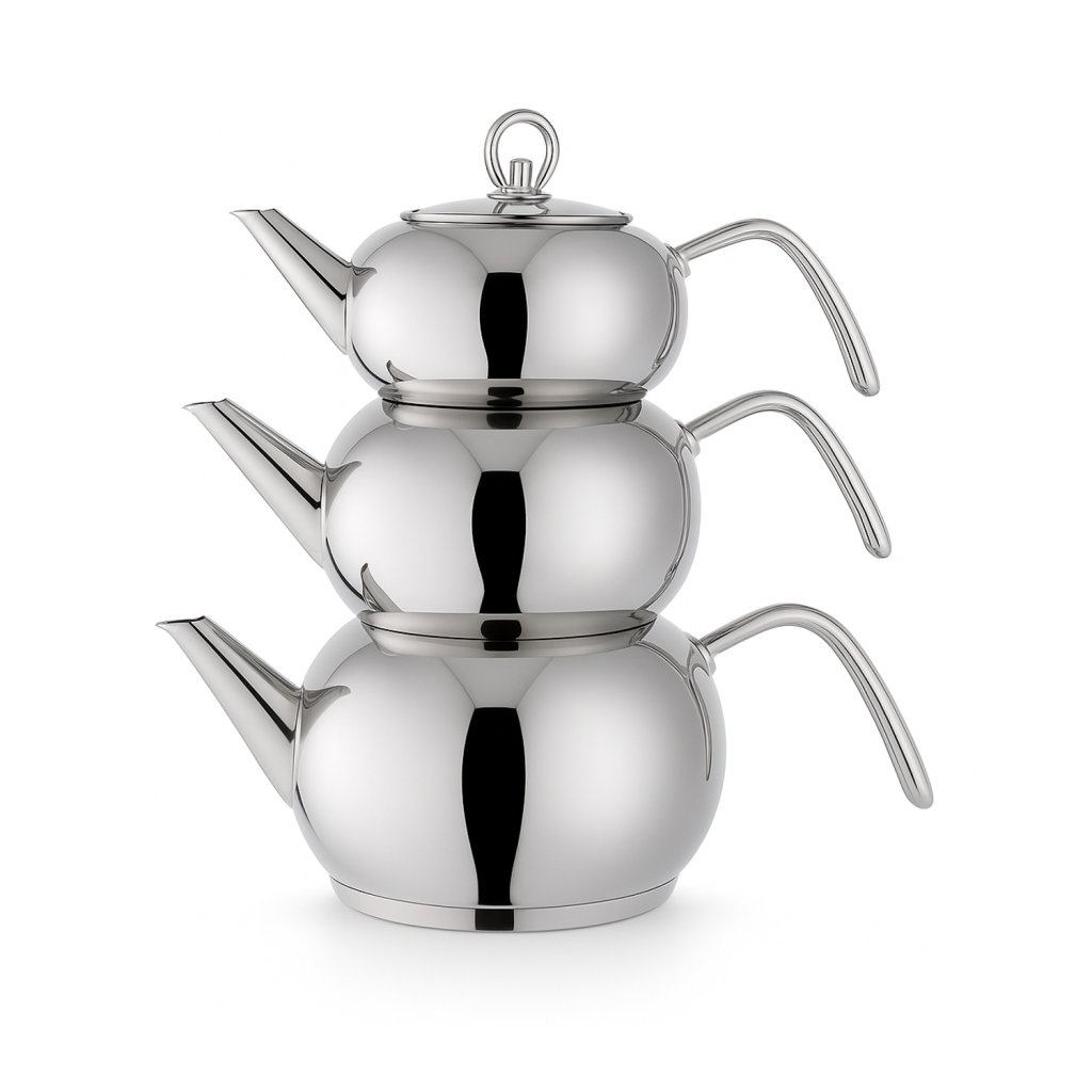 Caydanlik KARACA 3D představuje vrchol mezi čajovými soupravami. Je tvořena třemi na sebe navazujícími konvicemi z kvalitní nerezové oceli, které umožňují přípravu čaje ve více vrstvách – přesně podle tradičního tureckého způsobu. Vyniká svým nadčasovým designem, dokonalým leskem a mimořádnou odolností.