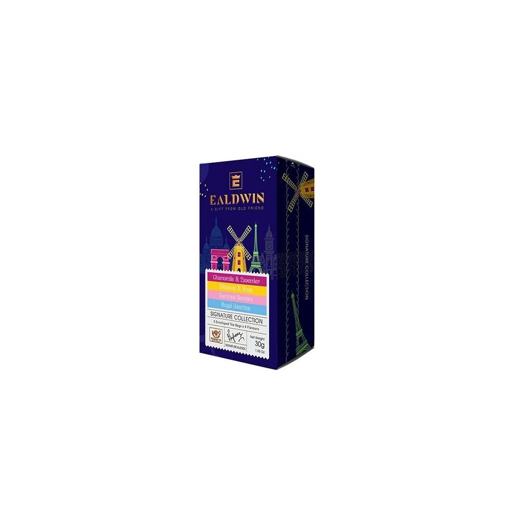 Ealdwin – Signature Collection (20 sáčků) je elegantní kolekce čajů, která spojuje bylinné, květinové a ovocné tóny. Obsahuje čtyři oblíbené směsi – Chamomile & Lavender, Hibiscus & Rose, Royal Jasmine a Summer Berries. Každý sáček přináší jiný zážitek a dohromady tvoří harmonickou kolekci pro chvíle pohody.