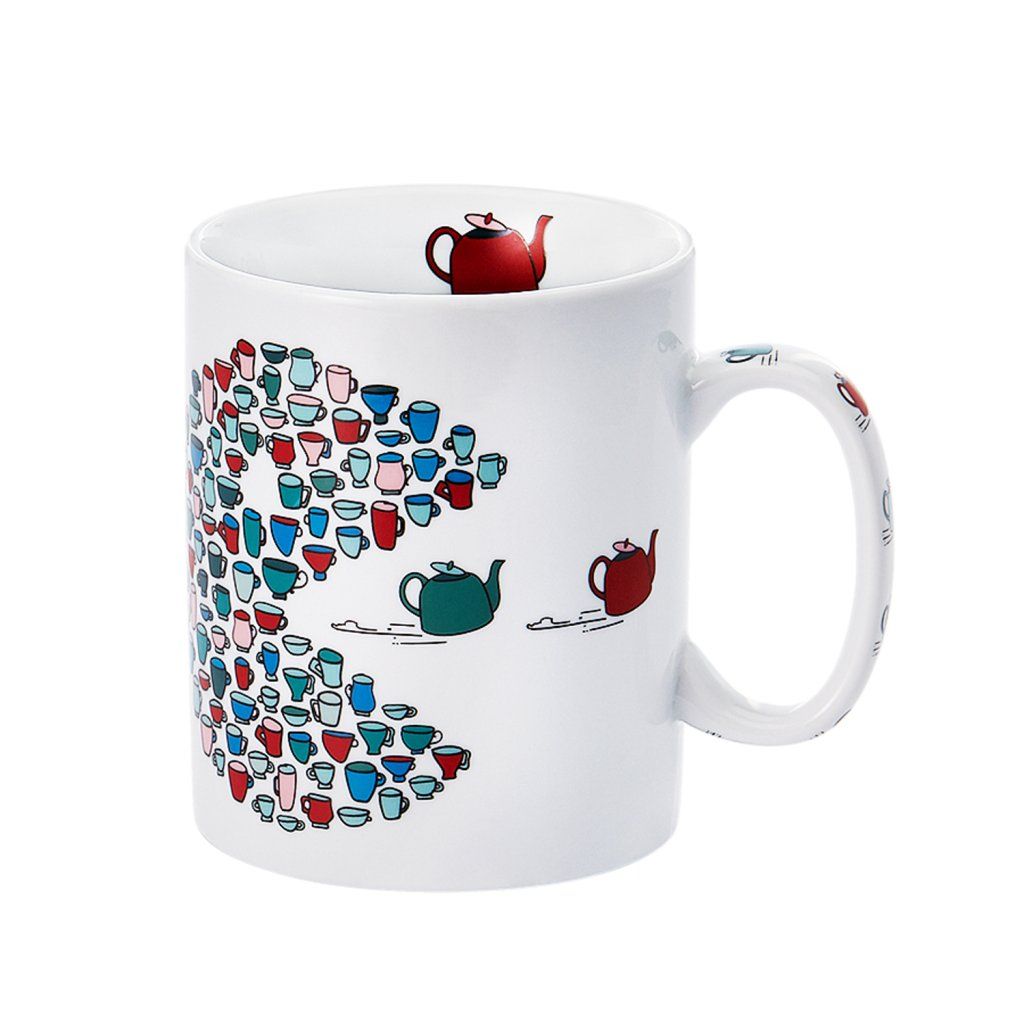 Hrnek PACMAN je originální porcelánový hrnek, který spojuje lásku ke kávě s hravým retro designem. Na první pohled zaujme motivem inspirovaným ikonickou hrou Pacman, tentokrát vytvořeným z drobných hrníčků a konviček, které dohromady tvoří známý tvar.