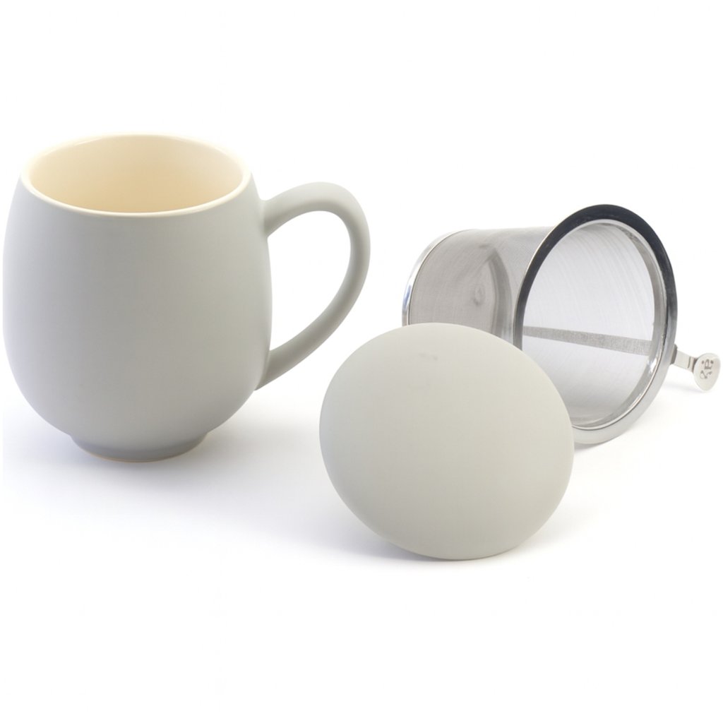 Hrnek se sítkem a víčkem ZAARA šedý – porcelánový hrnek s jemně matným povrchem, nerezovým sítkem a víčkem pro snadnou přípravu sypaného čaje.