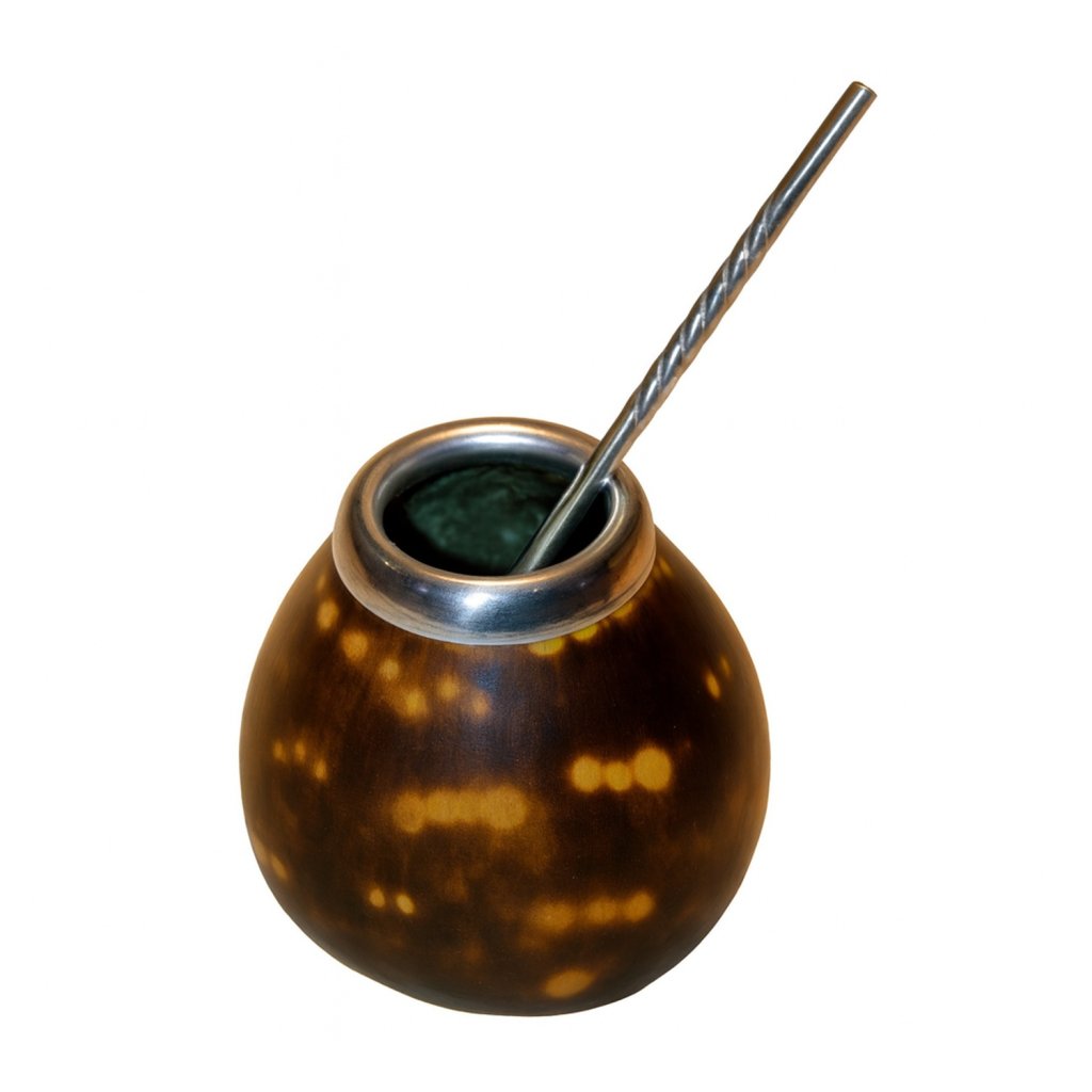 Kalabasa a bombilla – tradiční souprava pro přípravu jihoamerického nápoje yerba maté. Přírodní kalabasa z tykve s kovovým okrajem a nerezovou bombillou pro autentický zážitek.