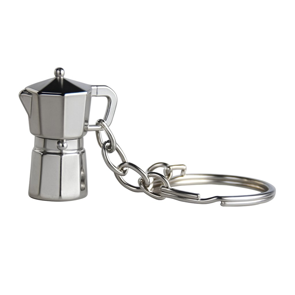 - Typ: kovová klíčenka ve tvaru moka konvičky