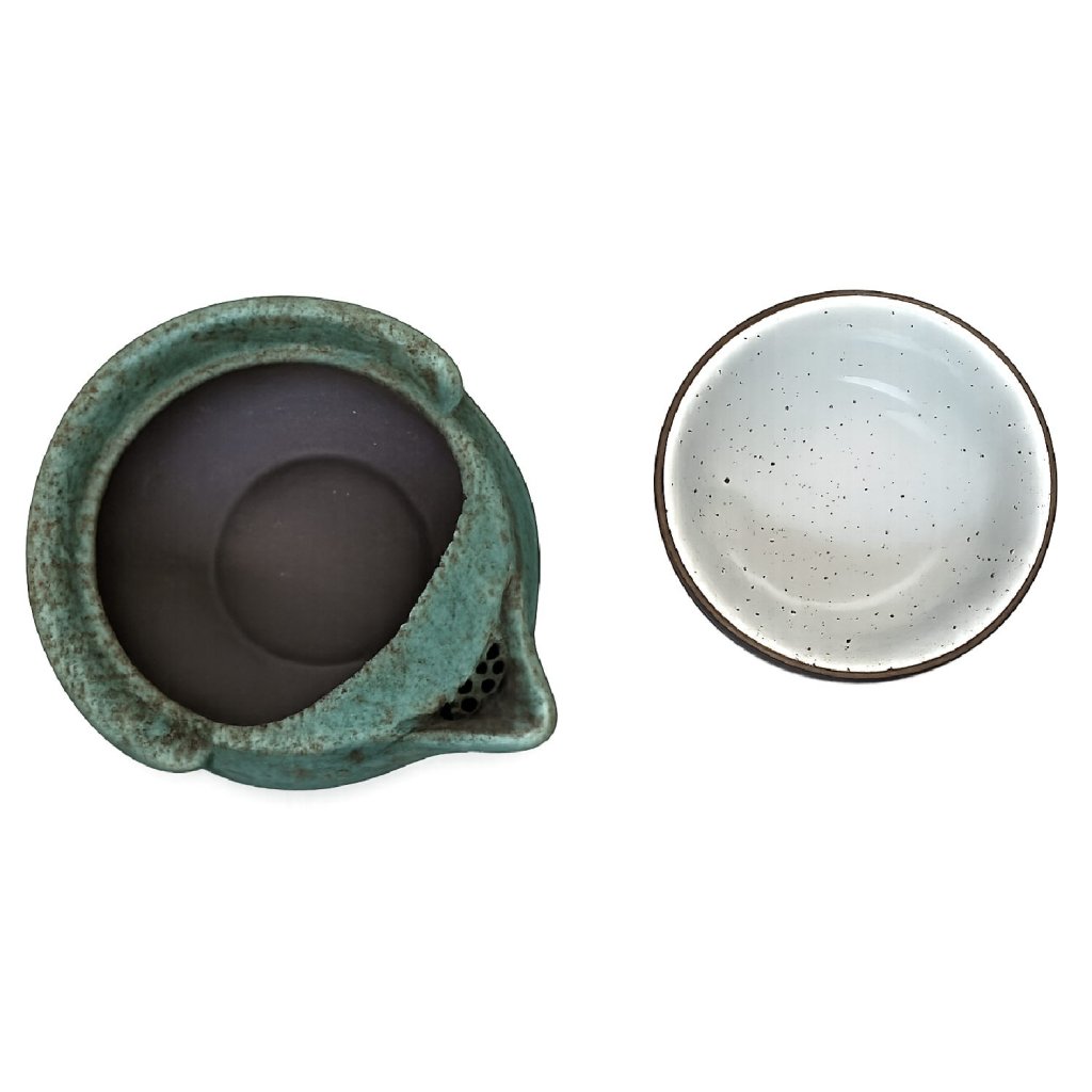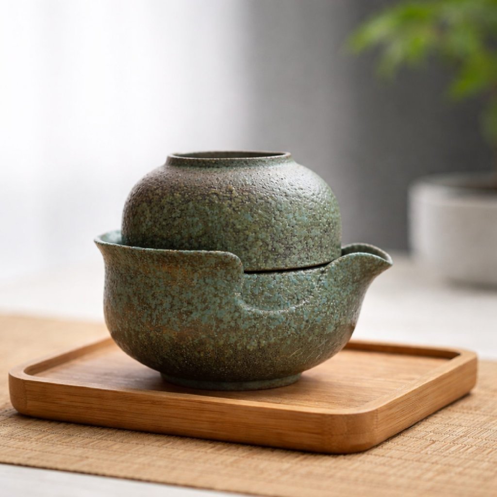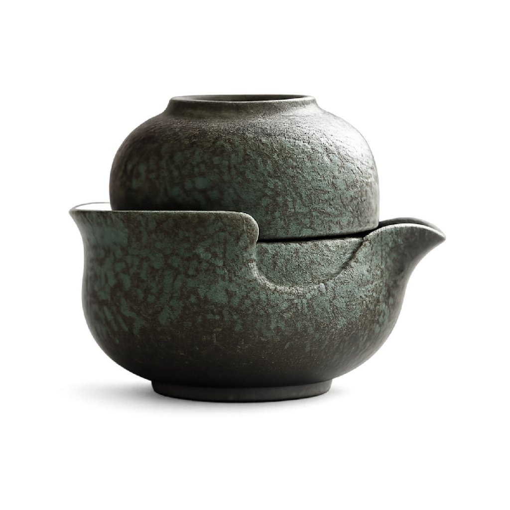 Keramika použitá v této soupravě je navržena tak, aby dobře akumulovala teplo a zároveň nijak nenarušovala chuť ani aroma čaje. Jemně strukturovaný povrch a organické tvary podporují přirozený kontakt s materiálem a přispívají k celkové harmonii čajového rituálu.