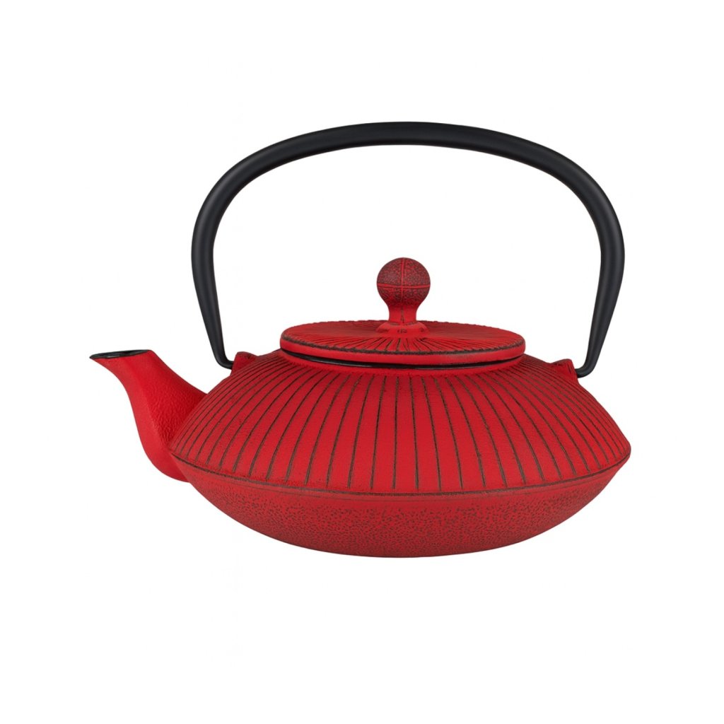 Litinová konvice ASIA – výrazná čajová konvice s orientálním designem v sytě červené barvě. Spojuje tradici japonského čajového umění s moderní elegancí.