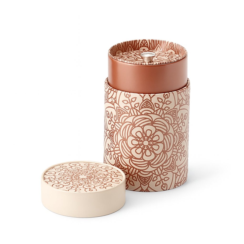 Plechovka Mandala, světlá je elegantní kovová dóza s jemným mandalovým vzorem v přírodních odstínech béžové a hnědé. Je ideální pro uchovávání sypaného čaje, kávy, bylinek nebo koření v dokonalé čerstvosti. Kombinuje praktické využití s estetickým designem, který vynikne v každé kuchyni či čajovém koutku.
