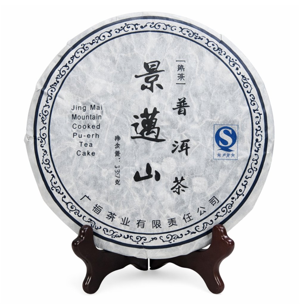 Pu Erh Jing Mai Mountain Cooked, 357 g je lisovaný tmavý čaj shu pu erh pocházející z proslulé hory Jing Mai v čínské provincii Yunnan. Čaj je lisován do tradičního koláče o hmotnosti 357 g, což je nejrozšířenější forma pro dlouhodobé zrání a skladování.