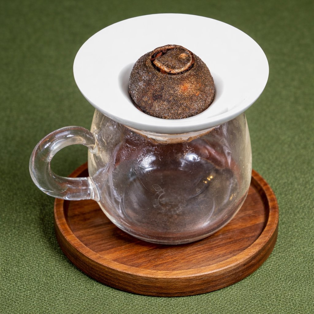 - Typ: Mandarin Pu-Erh (Xiao Qing Gan – čaj s mandarinkovou kůrou)