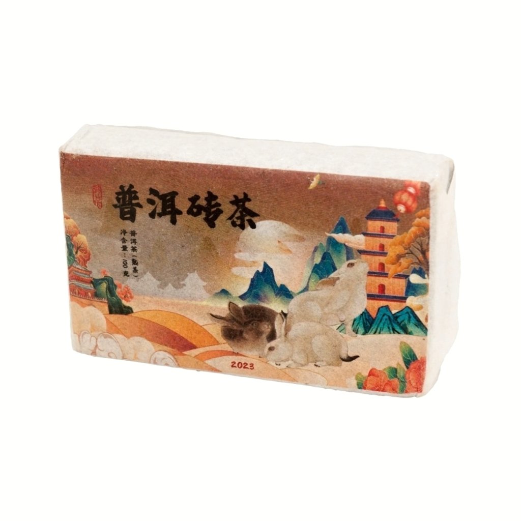 Pu Erh Orijin Simao Zhuan 2023, 100 g je lisovaný čaj ve formě tradiční cihličky (zhuan cha) pocházející z oblasti Simao v čínské provincii Yunnan. Rok sklizně 2023 dodává čaji svěží charakter, zatímco lisování do cihličky umožňuje jeho další postupné zrání.