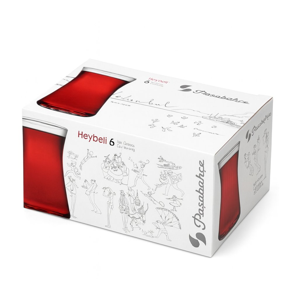Sada skleniček na turecký čaj HEYBELI od značky Paşabahçe přináší autentický turecký zážitek z pití čaje. Šest elegantních sklenic s charakteristickým tvarem „tulipánu“ je navrženo tak, aby zvýraznilo barvu a aroma čaje a zajistilo dokonalý požitek z každého doušku. Každá sklenička má objem 125 ml – ideální pro tradiční servírování tureckého čaje.