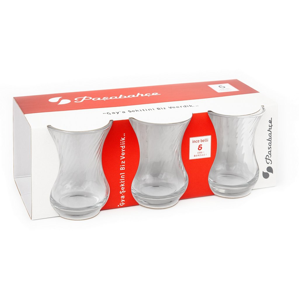 Elegantní sada šesti skleniček na turecký čaj s tradičním designem Ince Belli od značky Paşabahçe.