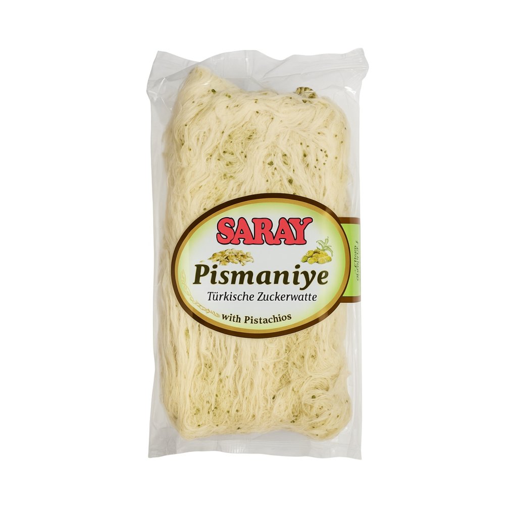 SARAY Pismaniye Pistachios 250g je lahodná turecká specialita zvaná také „turecká cukrová vlákna“. Jemná, nadýchaná struktura pismanyie se doslova rozplývá na jazyku a v kombinaci s praženými pistáciemi přináší nezapomenutelný zážitek.