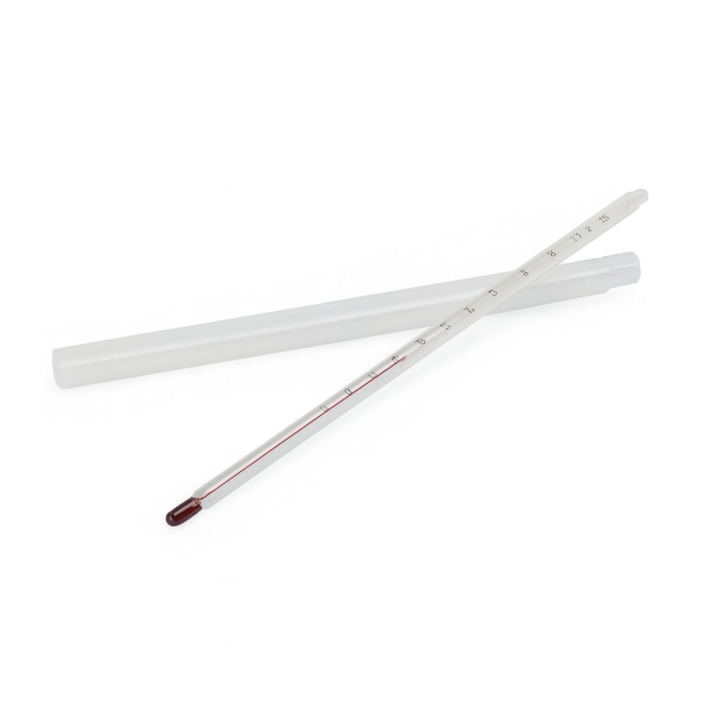 Vyrobený z tepelně odolného skla s barevnou kapalinou pro snadné čtení teploty. Součástí balení je také ochranné plastové pouzdro, které zajišťuje bezpečné skladování a přepravu. Teploměr neobsahuje rtuť a je tedy zcela bezpečný pro běžné používání.