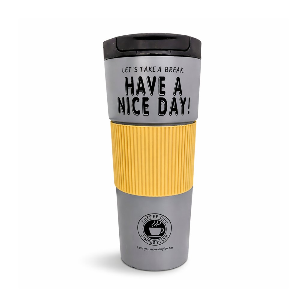 Stylový termohrnek HAVE A NICE DAY o objemu 600 ml udrží váš nápoj déle teplý. Kovové provedení doplňuje praktický silikonový pásek pro pohodlné držení.