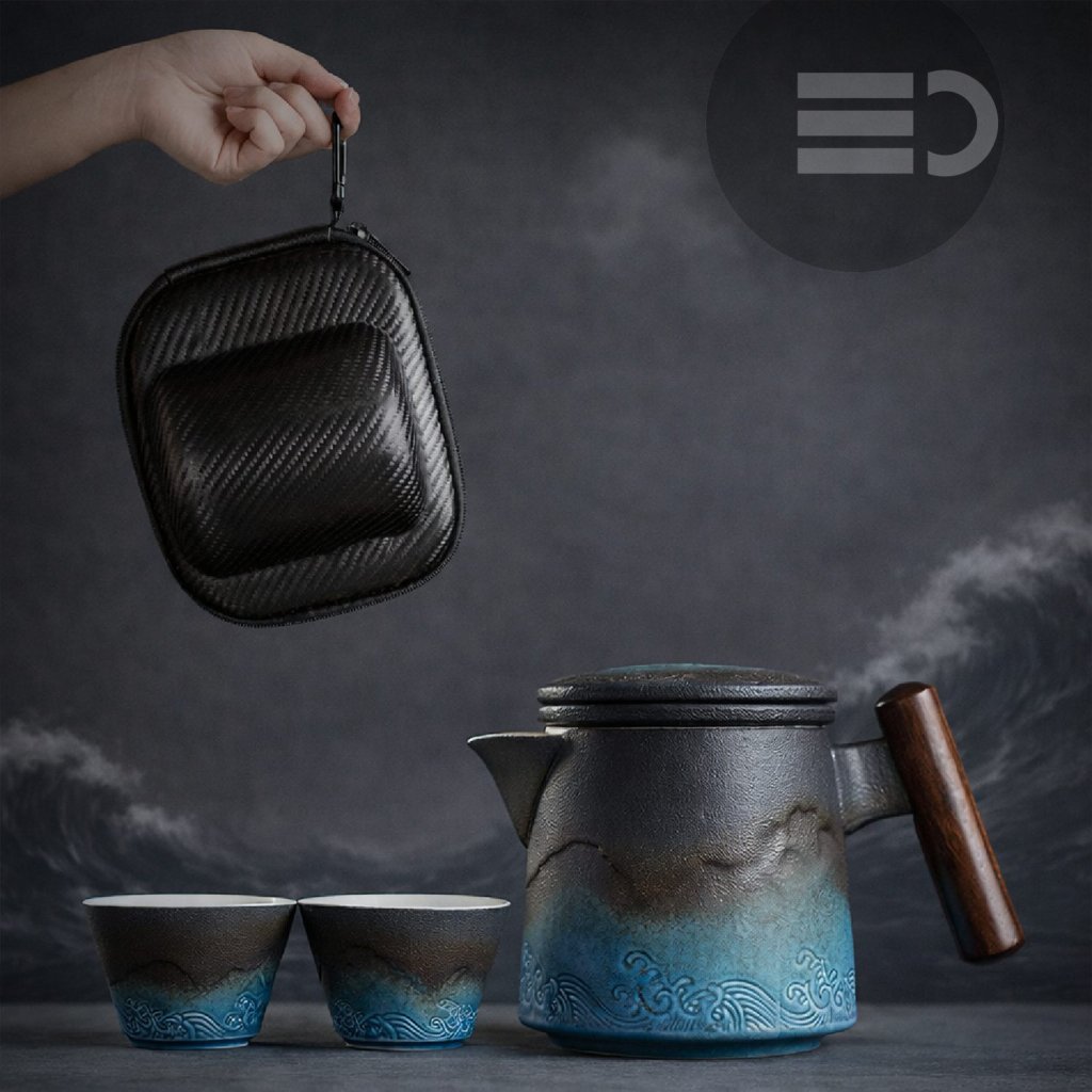 Luxusní cestovní čajová souprava Travel Kung Fu Tea Set BLUE PAMIR v odstínech modré a černé přináší do vašeho čajového rituálu styl, eleganci i harmonii.