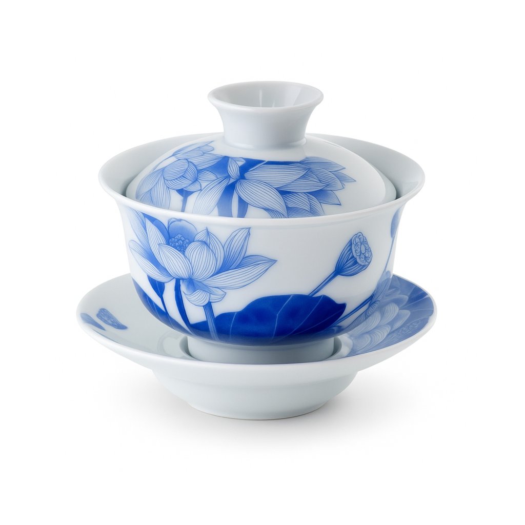 Porcelánový zhong s motivem lotosových květů – harmonie, elegance a čajová tradice v jednom.