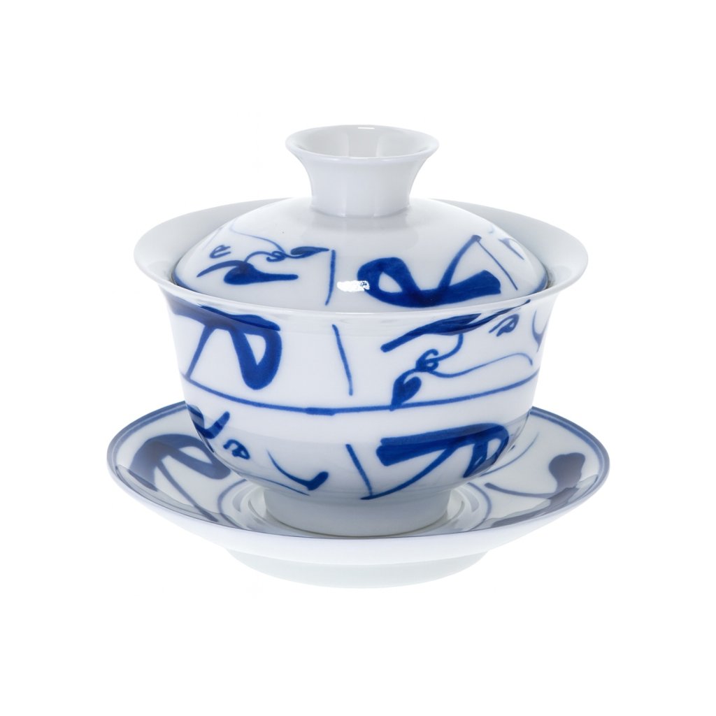 Porcelánový zhong s kaligrafickým dekorem – spojení tradice, umění a čajové elegance.